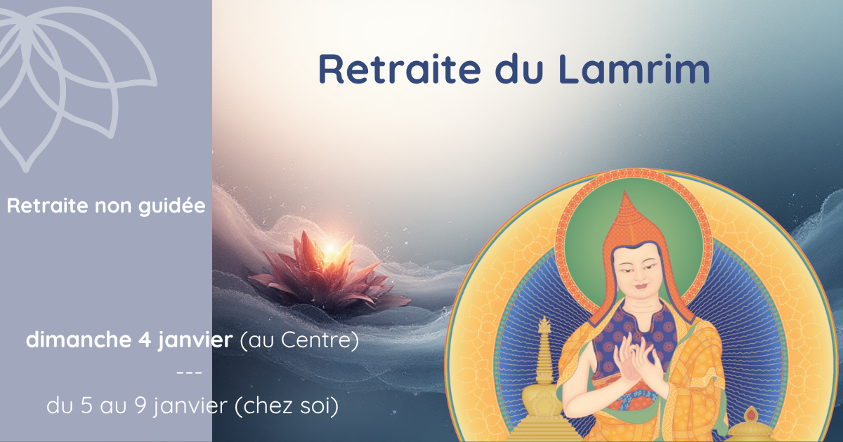 Ensemble le dimanche au CMK Vajravarahi, puis chez soi les cinq jours suivants, cette retraite sera une opportunité spéciale de nous familiariser avec la méditation bouddhiste et en particulier avec les méditations du LAMRIM, les étapes de la voie de l’illumination.